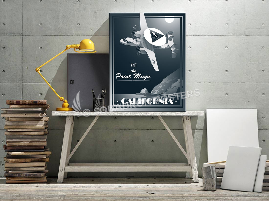 US Navy – Airborne Command Control Logistics Weapons School (ACCLOGWPNSCOL). Headquartered at Naval Station Norfolk, VA. they provide tactical training and evaluation to fleet E-2 Hawkeye and C-2 Greyhound squadrons on both the East and West Coasts. The West coast facility is at Naval Air Station Point Mugu or most recently known as Naval Base Ventura County (NBVC). Previously known as the “Hawkeye Weapons and Tactics Unit”, Airborne Command Control Logistics Weapons School was established in 2013 as a separate command within the Airborne Command Control Logistics Wing. ACCLOGWPNSCOL‘s core mission is preparing E-2 Hawkeye and C-2 Greyhound squadrons/detachments for operational deployments through tactical training, instruction and evaluation in the classroom, simulator and aircraft resulting in increased the combat readiness. (See East Coast Art HERE)