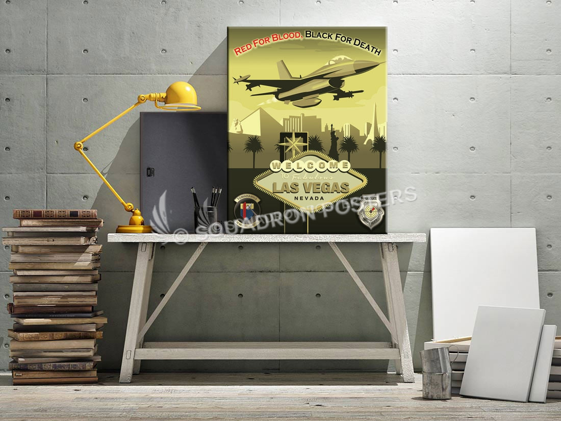 “Nellis AFB 16th Weapons Squadron F-16“ vintage style military aviation art by – Squadron Posters!