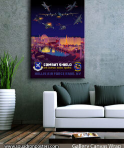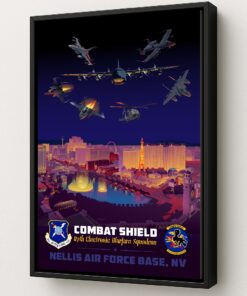 Nellis Air Force Base (Nellis AFB) is a United States Air Force military base. It is located in the north part of Las Vegas, Nevada. It is home to the Thunderbirds. The base also trains fighter aircraft for the US Air Force. The base is named for William Harrell Nellis, a Las Vegas resident and P-47 pilot who died in action during the Battle of the Bulge in World War II. Nellis AFB is home to the F-15, F-16, and the F-22 Raptors. Check out this stunning Nellis AFB 87th EWS Art by Squadron Posters!