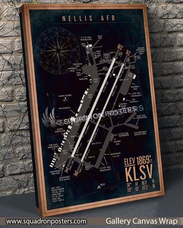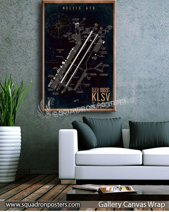 “Nellis AFB KLSV Airfield Map Art” vintage style military aviation art by – Squadron Posters!