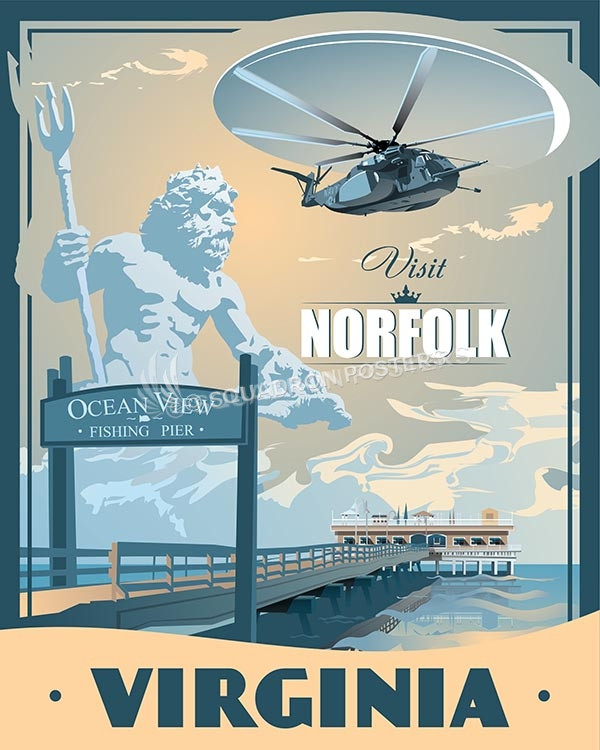 “Norfolk Virginia MH-53 Sea Dragon” vintage style military aviation travel poster art by – Squadron Posters!