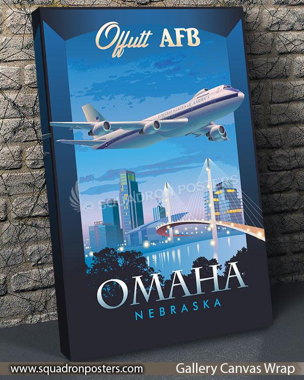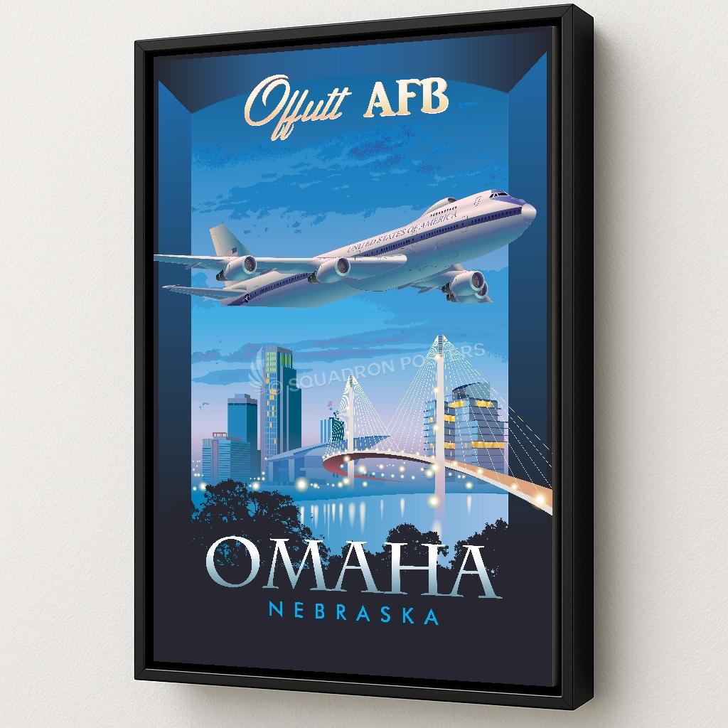 Offutt AFB Omaha Nebraska E-4B Art vintage style military aviation travel poster art by Squadron Posters!