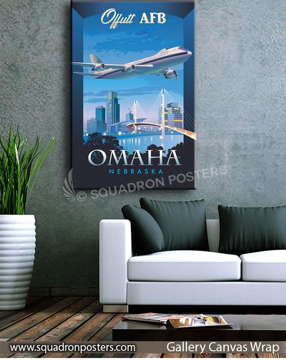 Offutt AFB Omaha Nebraska E-4B Art vintage style military aviation travel poster art by Squadron Posters!