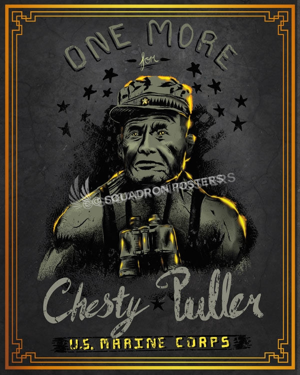 Lewis Burwell “Chesty” Puller, a United States Marine Corps lieutenant general who, early in his military career, fought guerrillas in Haiti and Nicaragua. He later went on to serve with distinction in World War II and the Korean War. Puller is the most decorated Marine in American history. He is one of two U.S. servicemen awarded five Navy Crosses and one Army Distinguished Service Cross. Puller’s five Crosses are next in number to the eight times Eddie Rickenbacker received the nation’s second-highest military award for valor. In 1955 (after 37 years of service), Puller retired from the Marine Corps, but his legend continues on in the Marine Corps.