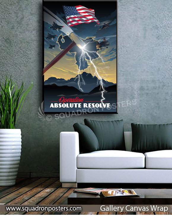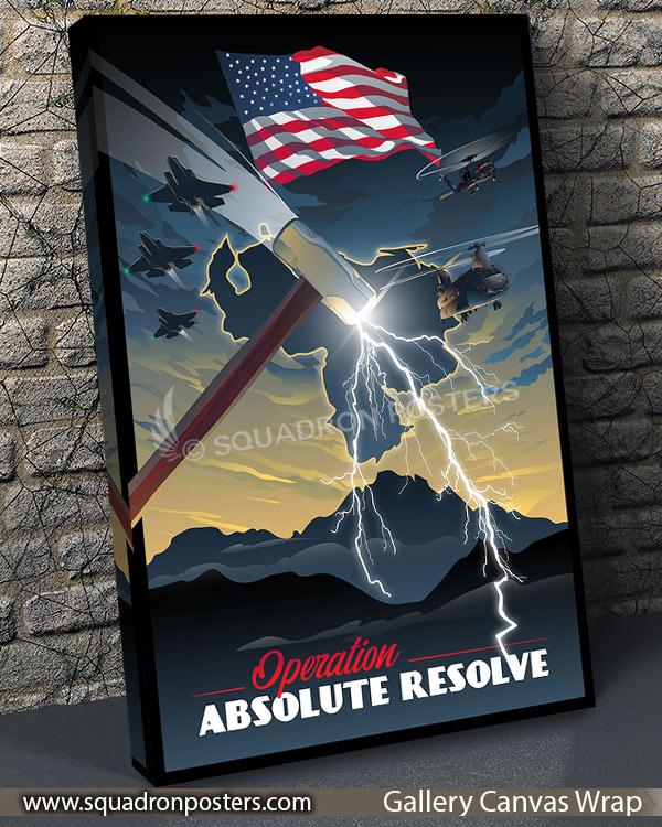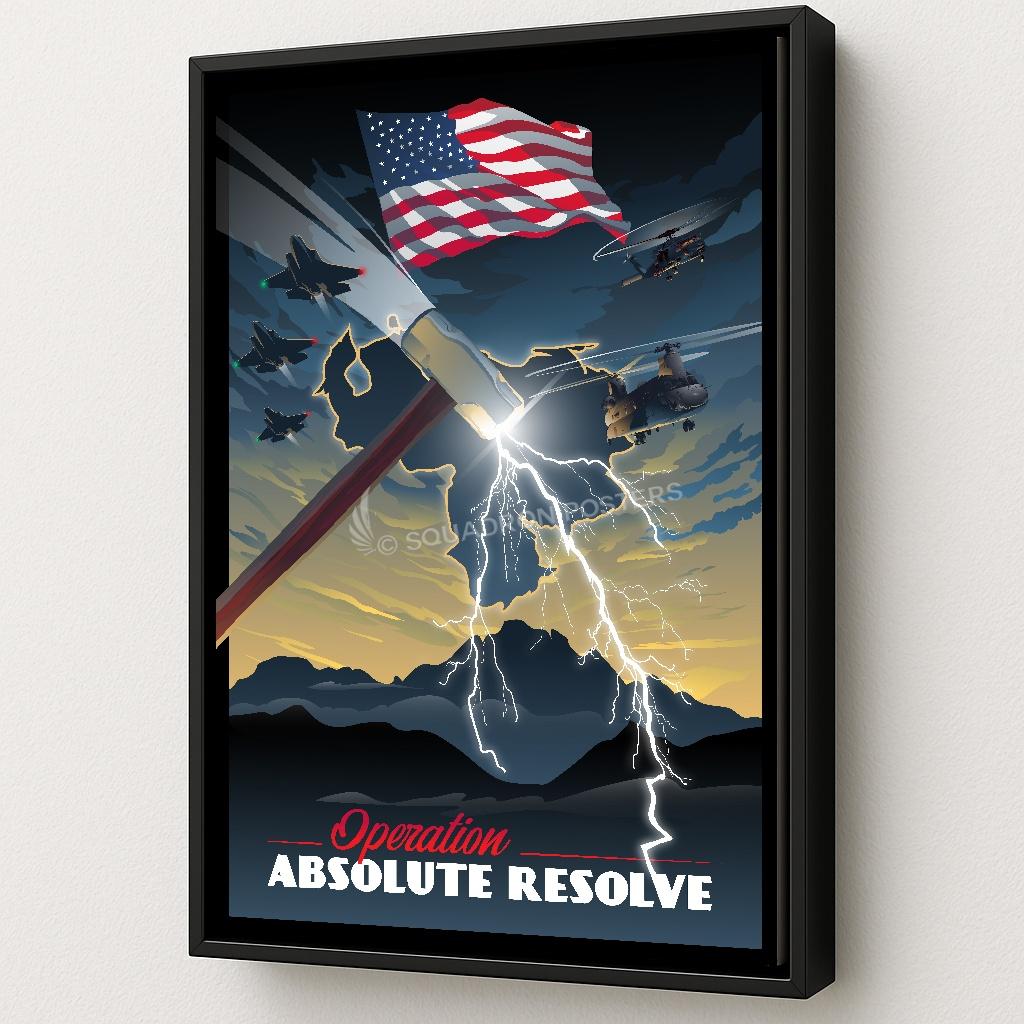 Operation Absolute Resolve vintage style military aviation travel poster art by – Squadron Posters!