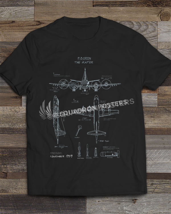 This vintage style military aviation “P3 Orion Blueprint graphic T-shirt” is dedicated to all the hard working men and women who fly, maintain and support the P-3 Orion.