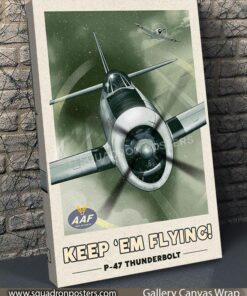 Experience the thunderous power of aviation history with our captivating canvas art featuring the legendary P-47 Thunderbolt. This meticulously crafted artwork pays homage to one of World War II’s most iconic fighter aircraft, showcasing its bold design and combat prowess. With vibrant colors and intricate detailing, it brings the rugged beauty of this aircraft to life and adds a touch of vintage aviation charm to any space. The P-47 Thunderbolt, affectionately known as the “Jug,” was renowned for its versatility and ability to excel in various roles, from ground attack to aerial combat. Its distinctive appearance and powerful presence in the skies made it a beloved symbol of American airpower during the war. Whether you’re a history enthusiast, an aviation buff, or simply appreciate fine art, this canvas captures the spirit of a bygone era and pays tribute to the brave pilots who flew these formidable machines. Embrace a piece of aviation history and bring the legacy of the P-47 Thunderbolt into your surroundings with this remarkable canvas art.