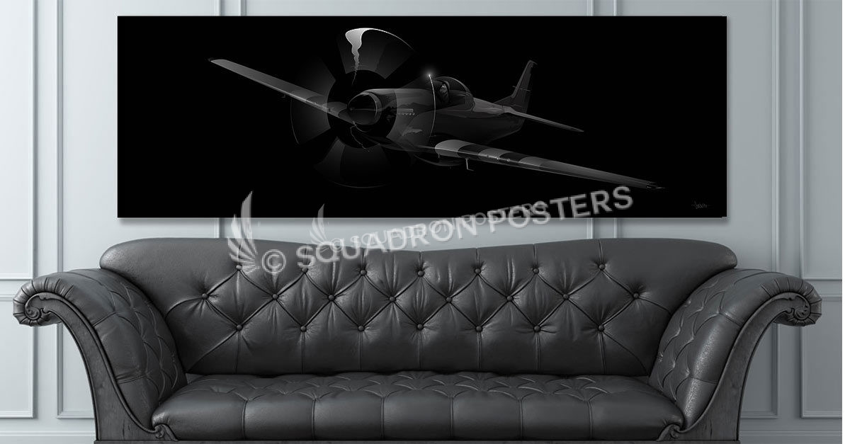 “P-51 Mustang (Angled) Jet Black Super Wide Canvas Print” with floating black frame by – Squadron Posters! Also check out the Frontal version.