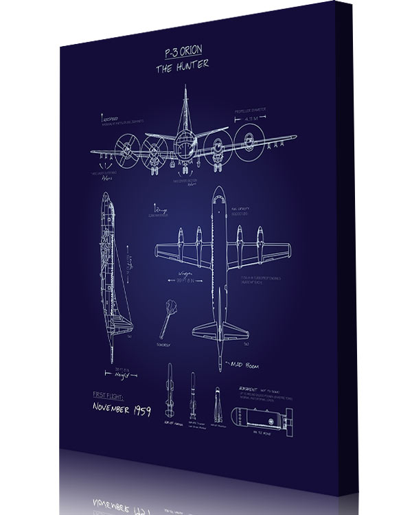 This vintage style military aviation travel poster “P3 Orion Blueprint Art” is dedicated to all the hard working people who fly, maintain and support the P-3 Orion.