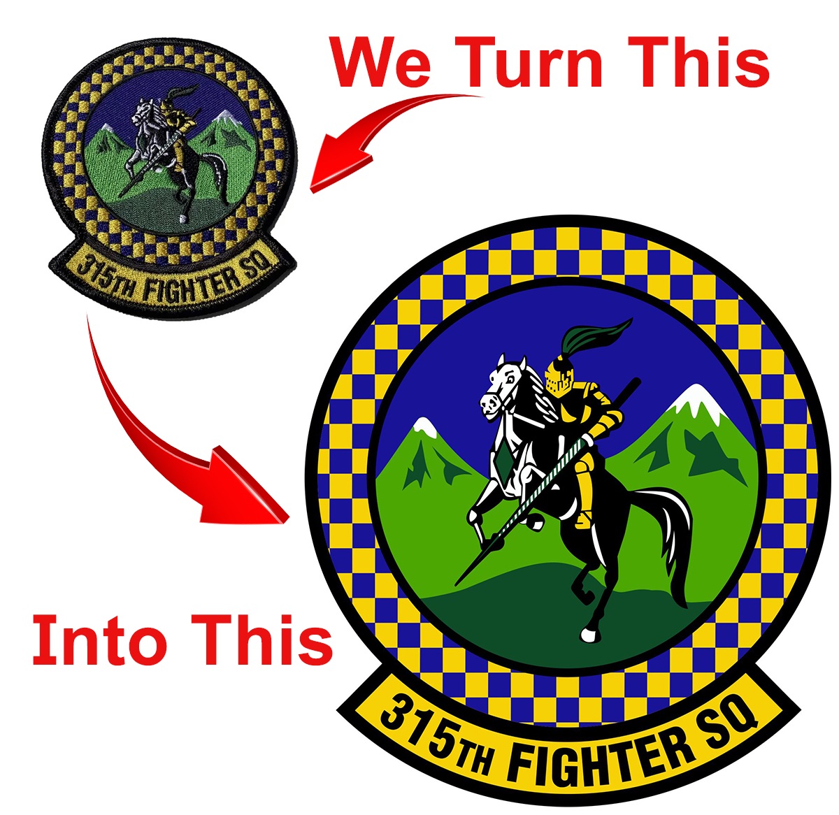 Squadron Posters will re-create current patch artwork of small, embroidered, or other similar patch images into high-resolution vector images in modern formats. This service is intended to assist organizations and people who are unable to locate a high quality patch art file. It’s ideal for older heritage patch artwork that was never originally developed as a high resolution vector image in the first place. Once completed, the re-created vector patch image will be uploaded into our patch database for personalized art. (Please keep in mind, this option is not for modifying current patch art or creating new patch art). Expect 2-3 weeks total time to be available.