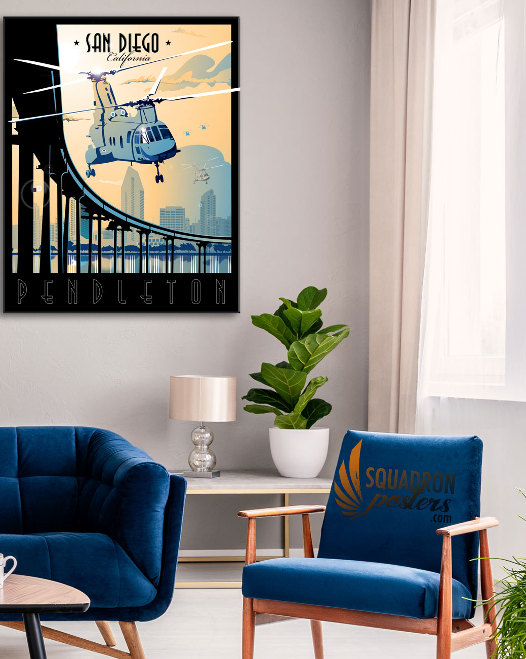 “Pendleton CH-46” vintage style military aviation poster art by – Squadron Posters!