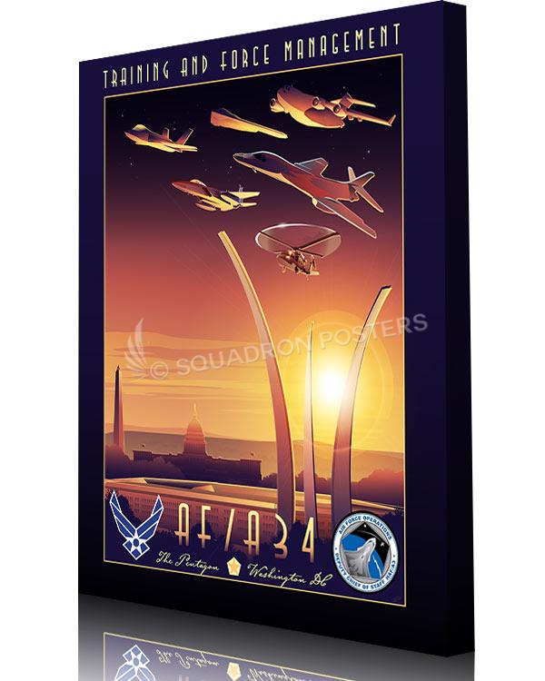 Pentagon AF A34 Training and Force Management Art vintage style military aviation travel poster art by Squadron Posters!