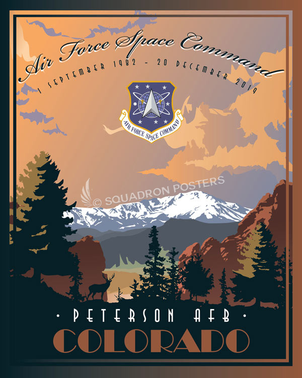 Peterson AFB Air Force Space Command vintage style military aviation travel poster art by – Squadron Posters!