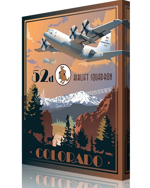 “Peterson AFB, Colorado 52nd Airlift Squadron – C-130H3 (Version 2)” vintage style poster art by – Squadron Posters!