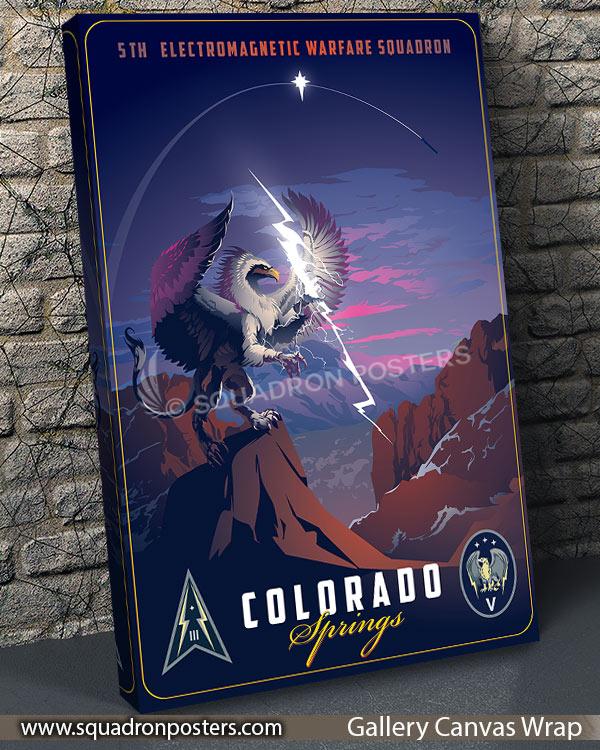 The 5th Electromagnetic Warfare Squadron (5th EWS) is part of Space Delta 3 and located at Peterson SFB, Colorado. The 5 EWS provides the Commander, USSPACECOM flexible and responsive space control capabilities to protect and defend national security space capabilities. It operates in Colorado Springs which sits within the shadow of the famous Pikes Peak. The Squadron mascot is a Griffin.