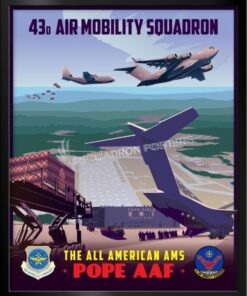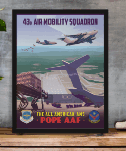 Pope Field is a U.S. military facility located 12 miles northwest of the central business district of Fayetteville, in Cumberland County, North Carolina, United States. Formerly known as Pope Air Force Base, the facility is now operated by the U.S. Air Force via a memorandum of agreement and an interservices support agreement with the U.S. Army as part of Fort Liberty. Pope AFB is named after First Lieutenant Harley Halbert Pope who was killed on 7 January 1919, when the Curtiss JN-4 Jenny he was flying crashed into the Cape Fear River. After five years, Camp Bragg became a permanent Army post renamed Fort Bragg, now known as Fort Liberty. Check out this stunning Pope AAF 43d AMS Art by – Squadron Posters!