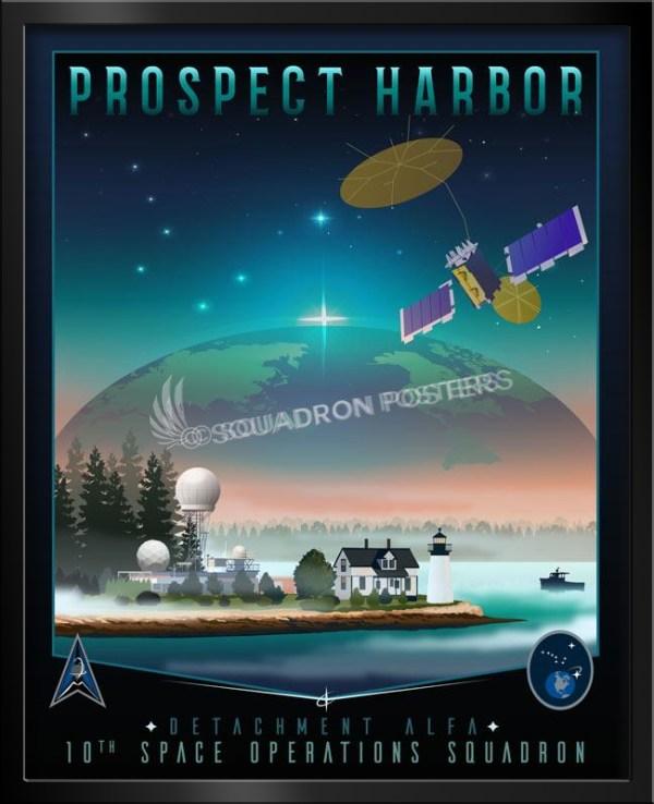 Prospect Harbor Naval Satellite Operations Station, Maine: this site covers just a few acres, at the tip of Prospect Harbor Point, where a half-dozen small buildings, including the old lighthouse keepers residence, and two small radomes, are used by naval personnel to control and monitor the worldwide satellite system. The site was first established by the Navy at the Corea antenna site of the Naval Security Group Winter Harbor, which operated from 1935 to 2001, from two sites nearby, at Corea and Schoodic Point, on either side of Prospect Harbor. Operations were moved to this former Coast Guard site at Prospect Harbor in 1964, and the activities remained independent from those at Winter Harbor. These are some of the several independent military communication sites, active and inactive, that have been established to take advantage of Maine’s location on the North Atlantic, and its proximity to the northern European and Russian states on the other side of the water. Check out this stunning Prospect Point ME Det Alfa 10 SOPS Art by – Squadron Posters! Collect all your military travels and tell your story!