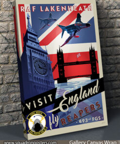 RAF Lakenheath 493d FGS vintage style military aviation travel poster art by – Squadron Posters!