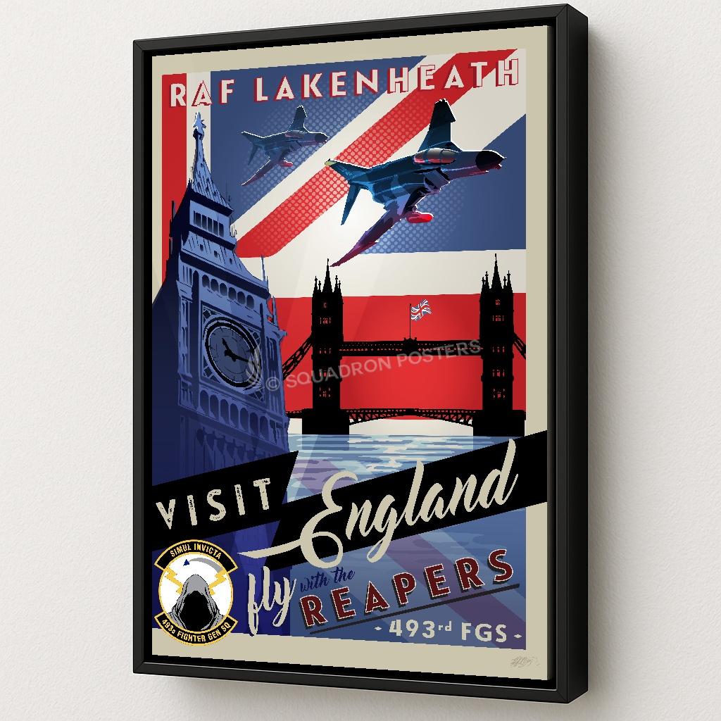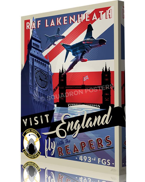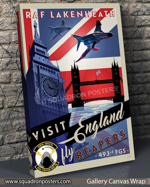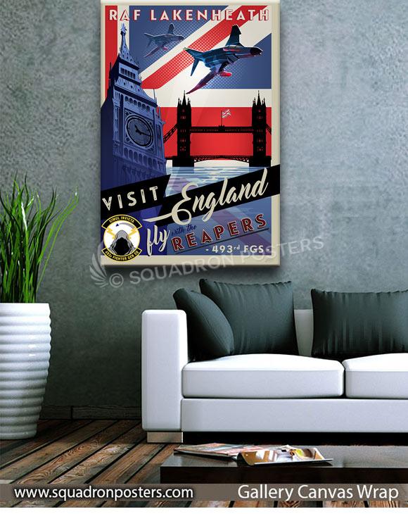 RAF Lakenheath 493d FGS vintage style military aviation travel poster art by – Squadron Posters!