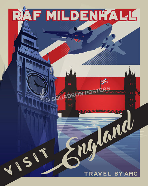 “RAF Mildenhall C-17” vintage style military aviation travel poster art by – Squadron Posters!