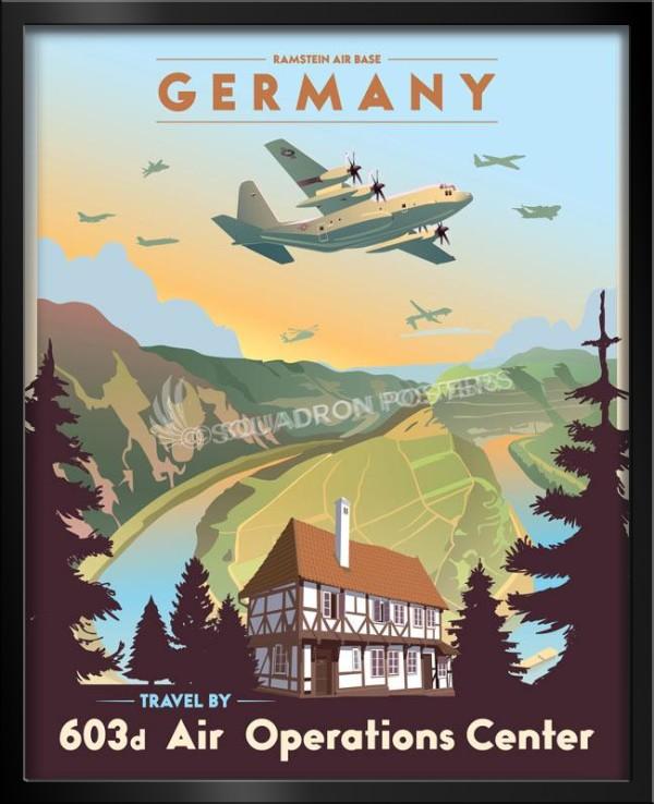 Ramstein AB Germany 603d AOC vintage style military aviation travel poster art by – Squadron Posters!