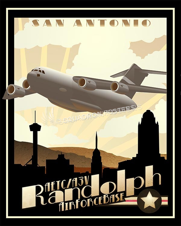 “Randolph AFB C-17” vintage style military aviation travel poster art by – Squadron Posters!
