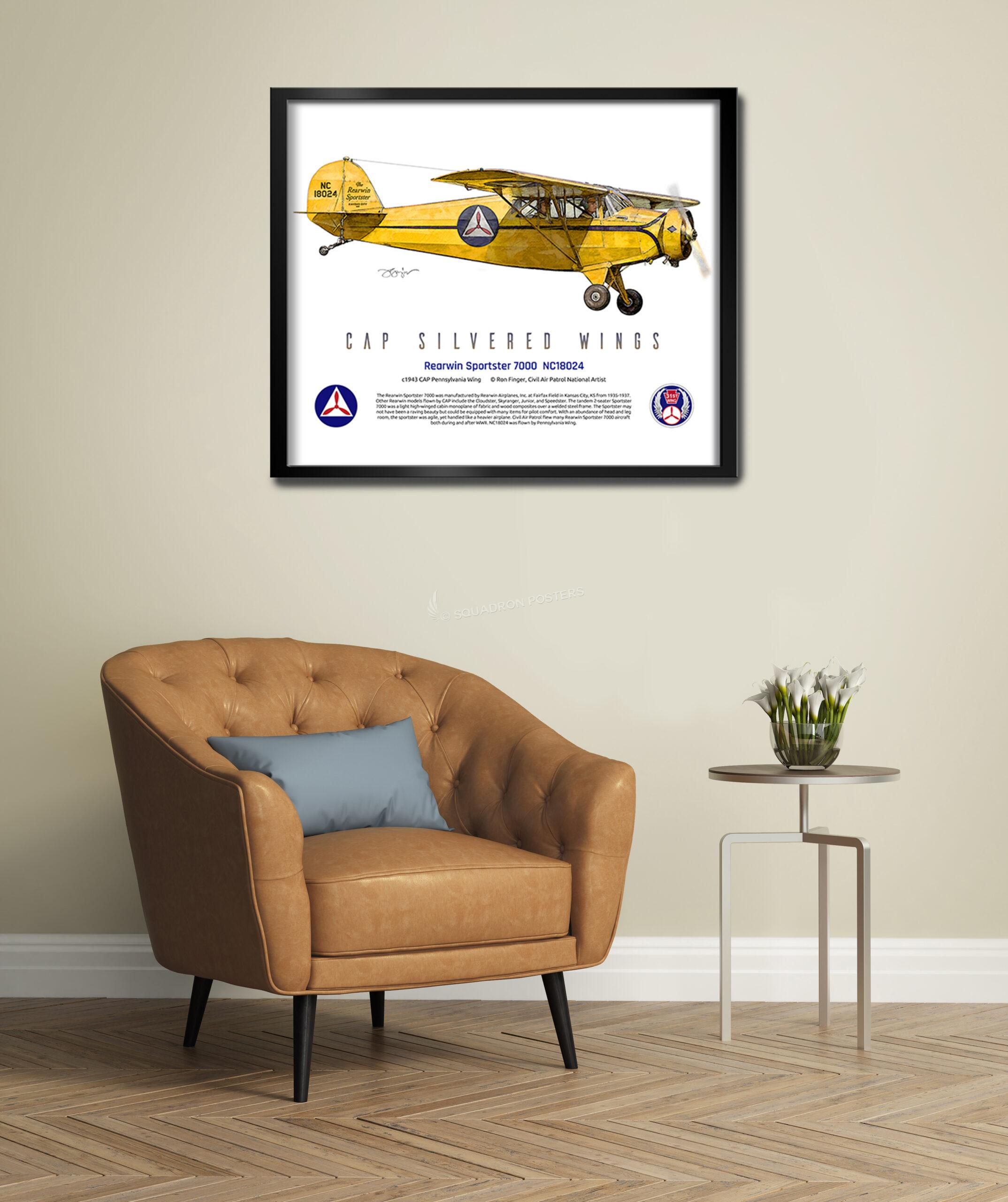Rearwin Sportster 7000 NC18024 vintage style military aviation travel poster art by – Squadron Posters!