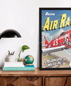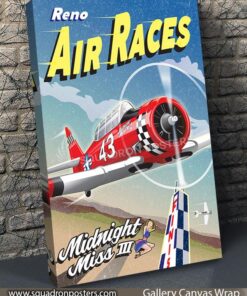 Celebrate the excitement of the Reno Air Races with the Midnight Miss III Art, featuring the legendary SNJ Texan, a star of the T-6 Gold Class. Piloted by retired Air Force instructor Joel Stinnett, Midnight Miss III showcases speed, skill, and precision in the competitive air racing arena. This vibrant design captures the iconic red and checkered livery as the aircraft races past the finish line, embodying the passion and legacy of air racing. Ideal for fans of aviation and adrenaline-pumping sports, this artwork honors the spirit of competition and the beauty of flight. A perfect keepsake for enthusiasts of the Reno Air Races and aviation history alike!