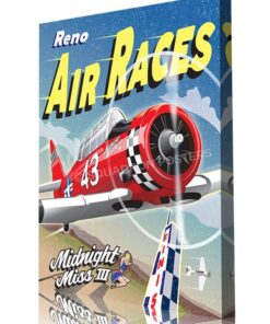Celebrate the excitement of the Reno Air Races with the Midnight Miss III Art, featuring the legendary SNJ Texan, a star of the T-6 Gold Class. Piloted by retired Air Force instructor Joel Stinnett, Midnight Miss III showcases speed, skill, and precision in the competitive air racing arena. This vibrant design captures the iconic red and checkered livery as the aircraft races past the finish line, embodying the passion and legacy of air racing. Ideal for fans of aviation and adrenaline-pumping sports, this artwork honors the spirit of competition and the beauty of flight. A perfect keepsake for enthusiasts of the Reno Air Races and aviation history alike!