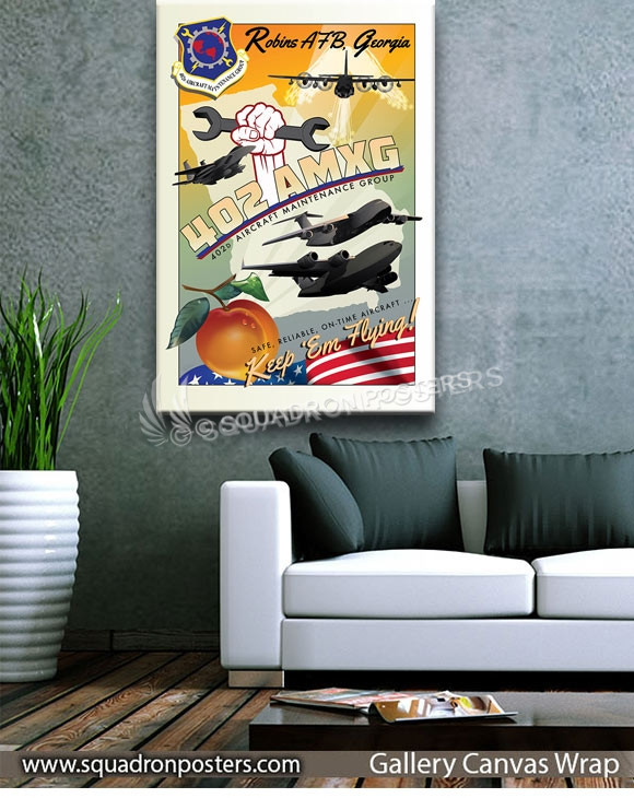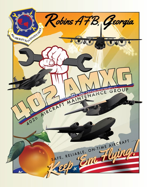 “Robins AFB 402 AMXG” vintage style military aviation poster art by – Squadron Posters!