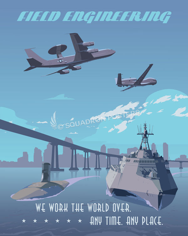 “San Diego Field Engineering” vintage style military aviation travel poster art by – Squadron Posters!