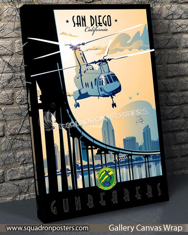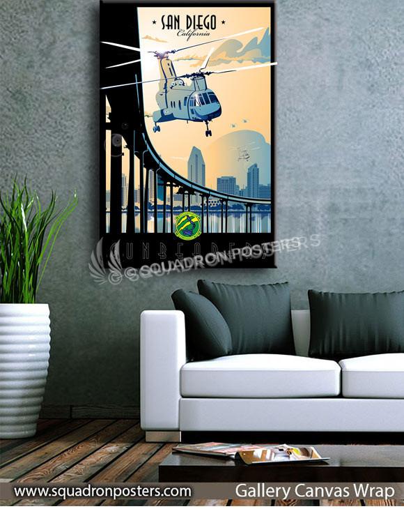 “San Diego HELSUPPRON ELEVEN (HC-11)” vintage style military aviation travel poster art by – Squadron Posters!