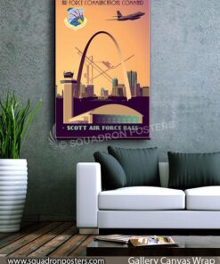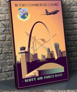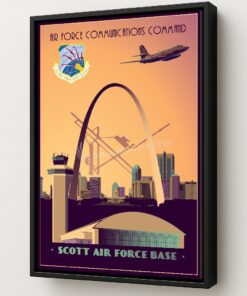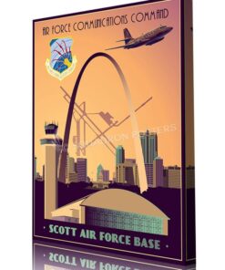 Scott Air Force Base is a United States Air Force base in St. Clair County, Illinois, near Belleville and O’Fallon, 17 miles east-southeast of downtown St. Louis. Originally Scott Field, it was one of 32 Air Service training camps established after the United States entered World War I in April 1917. The present base serves as the headquarters of Air Mobility Command (AMC) and its showcase wing, and it is also the headquarters of the U.S. Transportation Command, a Unified Combatant Command that coordinates transportation across all the services. Check out this stunning Scott AFB Air Force Communications Command art by Squadron Posters!
