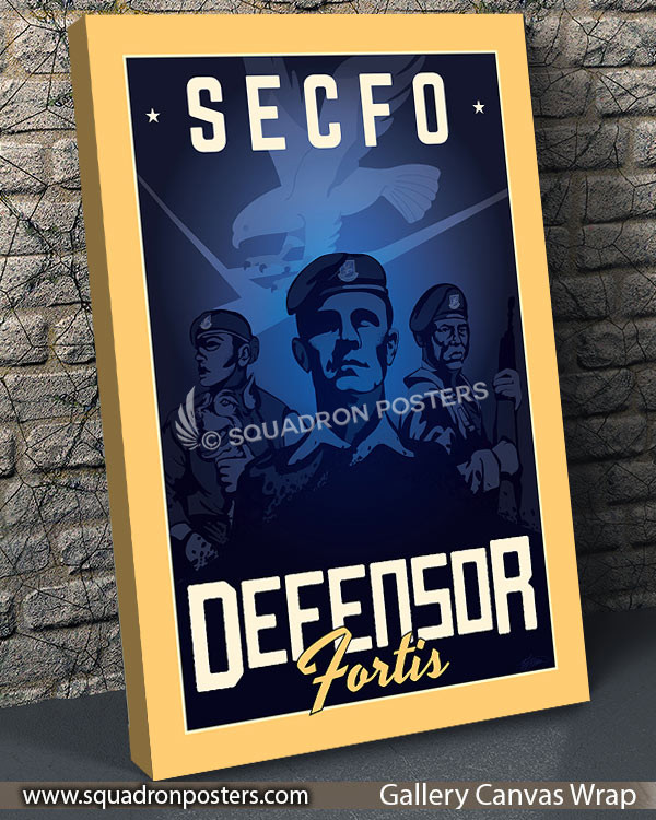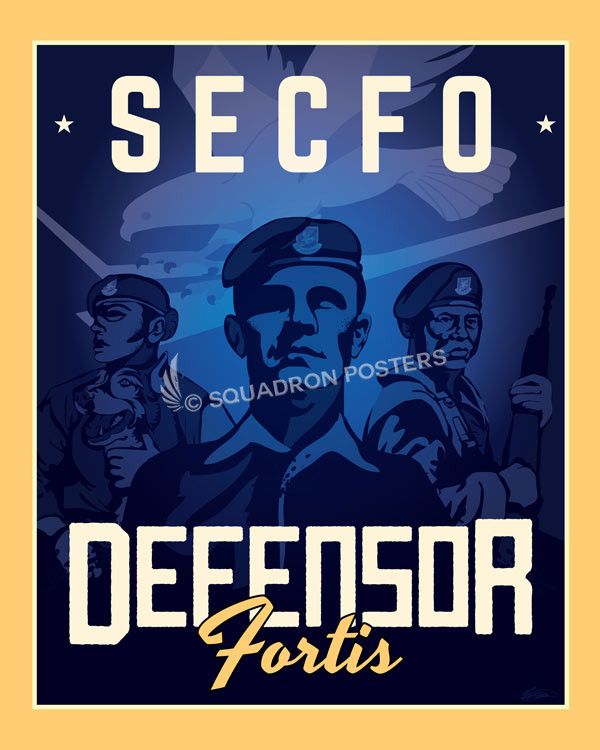 “SECFO Security Forces” vintage style military aviation travel poster art by – Squadron Posters!