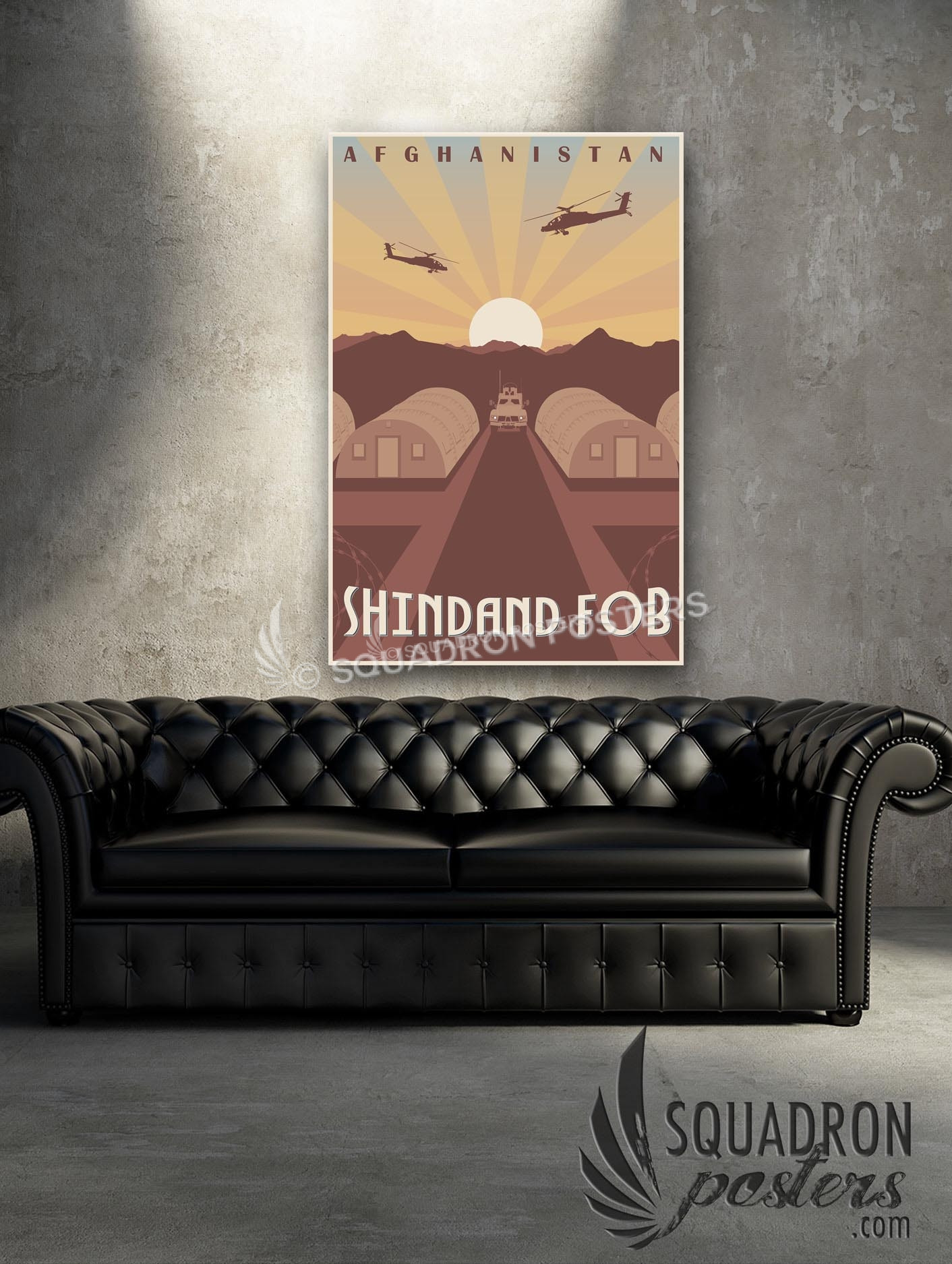 This vintage art deco style military travel poster “Shindand FOB ” is dedicated to all those who served at Forward Operating Base Shindand, Afghanistan. This artwork depicts the spectacular sunrises behind the mountains that surrounded the FOB.
