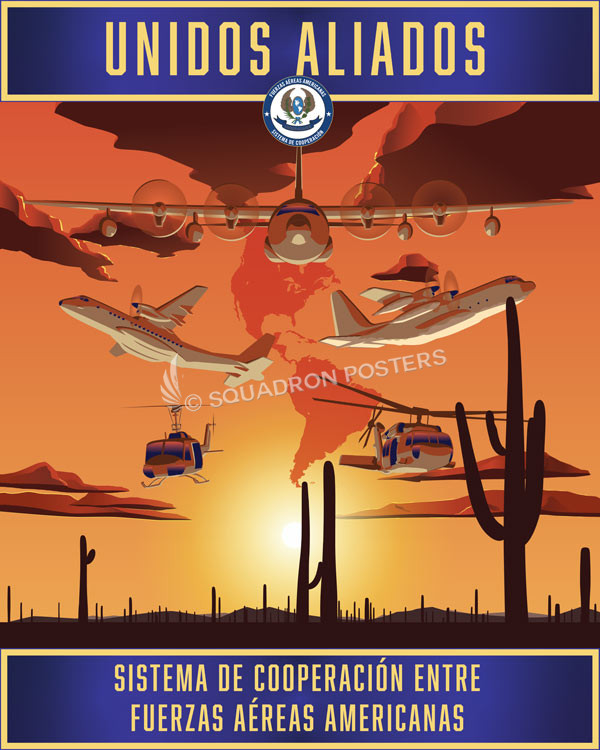 “SICOFAA “UNIDOS ALIADOS” vintage style military aviation travel poster art by – Squadron Posters!