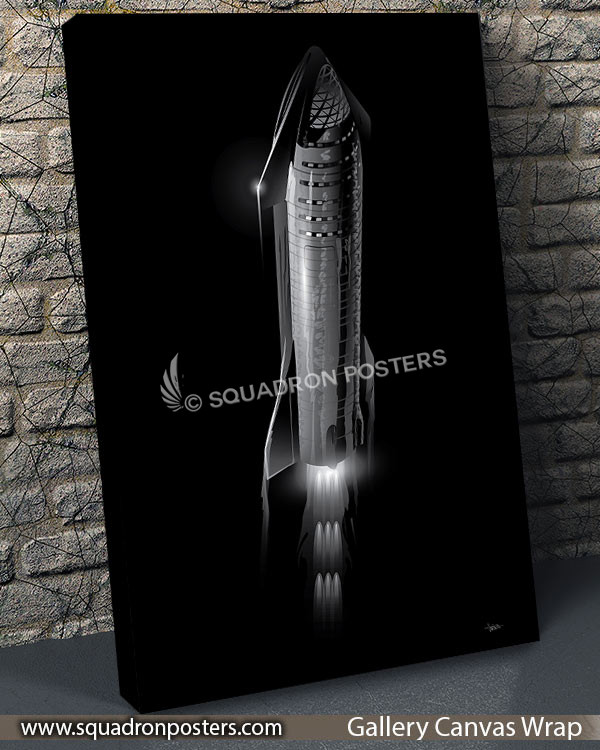 “SN-10 Starship “Verticle Angle” Jet Black Lithograph” vintage style military aviation art by – Squadron Posters!