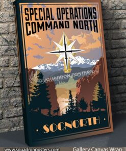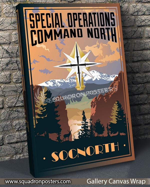 This vintage art deco style military travel poster “SOCNORTH” is dedicated to all the hard working men and women of the Special Operations Command North.