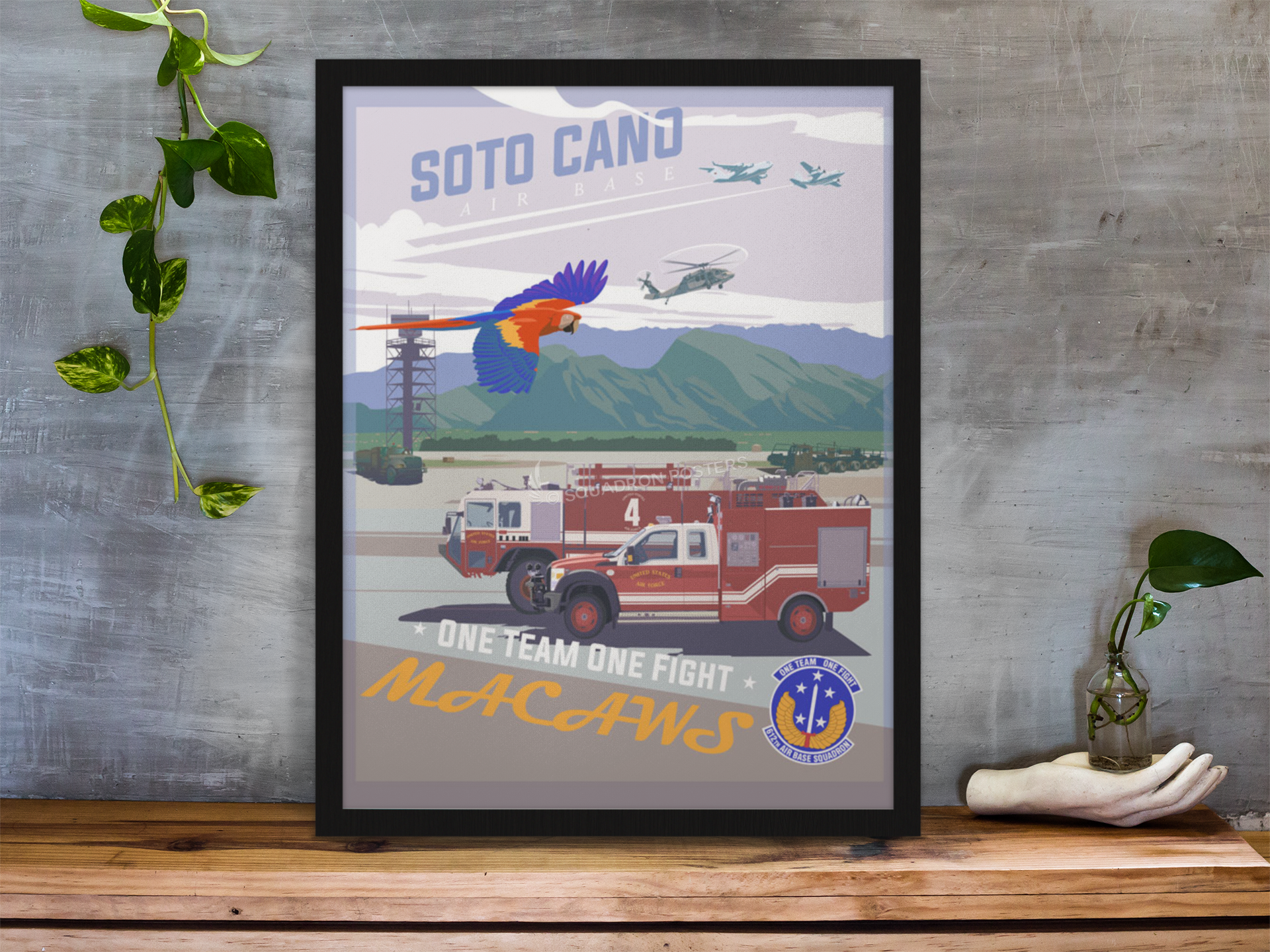 Soto Cano AB 612th ABS “Macaws” vintage style military aviation travel poster art by – Squadron Posters!