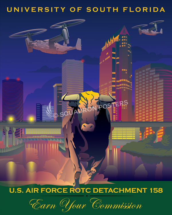 The University of South Florida (USF), though a relatively young university, founded in 1956, has rich traditions – traditions of access and opportunity for students, of academic excellence, and of groundbreaking research. USF is situated in the vibrant and diverse Tampa Bay region, with campuses in Tampa, St. Petersburg and Sarasota-Manatee. Detachment 158 serves multiple crosstown colleges and universities as well. Det 158 offers a challenging in-college program to develop quality leaders for the U.S. Air Force, with graduates commissioning as 2nd Lieutenants who will go on to serve in a variety of career fields.