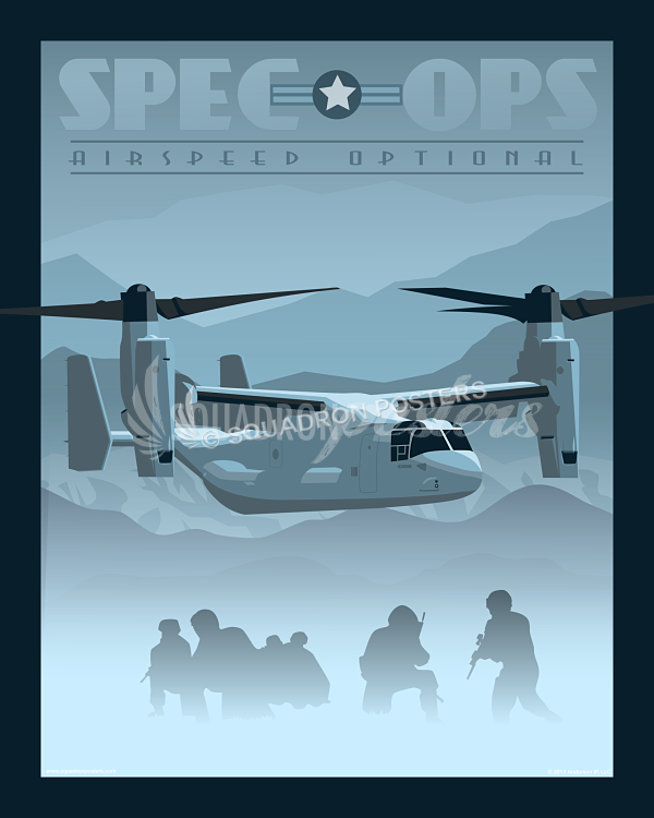 This V-22 Osprey poster is dedicated to the Special Operators who utilize this amazing piece of machinery to fly in and out of combat. Thank you for all you do! The Bell Boeing V-22 Osprey is an American military, multi-mission, tilirotor aircraft with both vertical takeoff and landing, and short takeoff and landing capability. It is designed to combine the functionality of a high-speed cruise performance turboprop aircraft and a conventional helicopter with longer range capability.