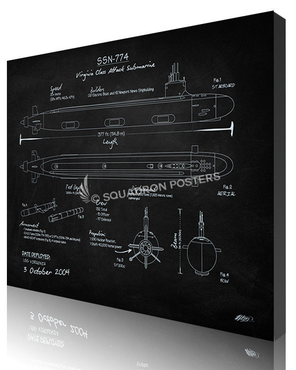 SSN-774 Virginia Class Submarine Blackboard Canvas military naval art by – Squadron Posters!