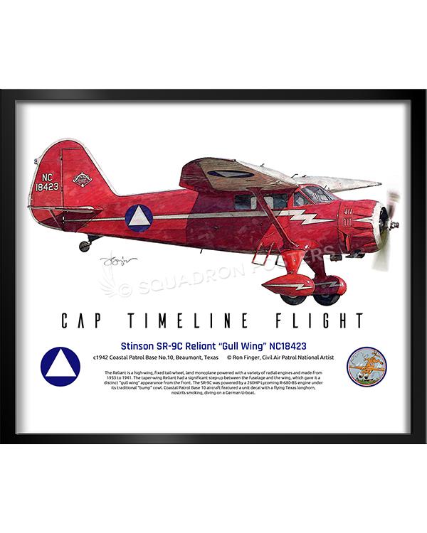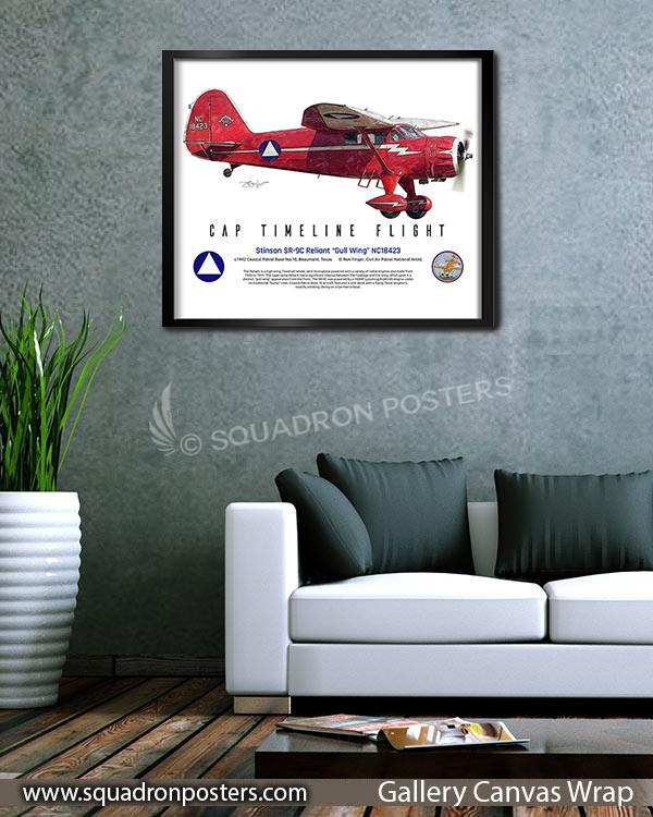 Stinson SR-9C Reliant Gull Wing NC18423 vintage style military aviation travel poster art by – Squadron Posters!