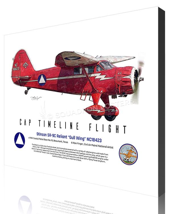 Stinson SR-9C Reliant Gull Wing NC18423 vintage style military aviation travel poster art by – Squadron Posters!