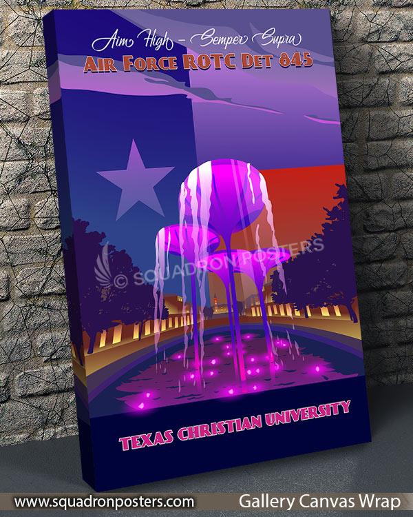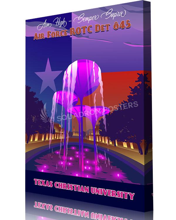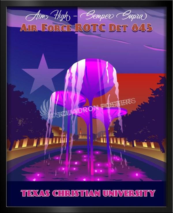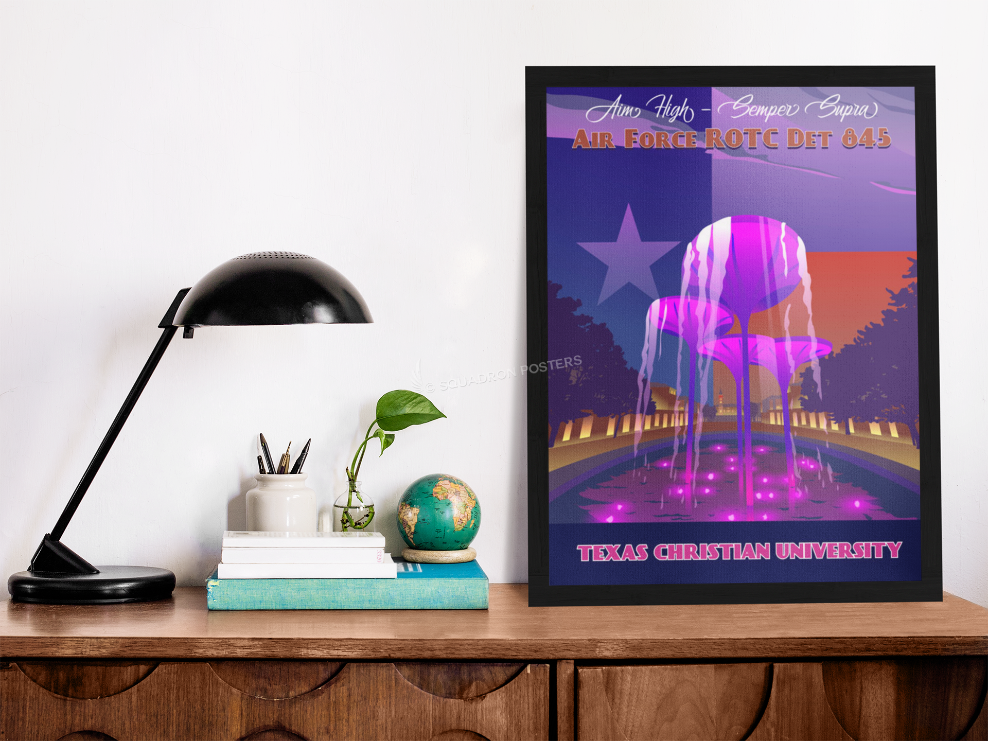 Air Force ROTC Detachment 845, hosted at Texas Christian University, is dedicated to molding future leaders for the United States Air Force and Space Force. Located in Fort Worth, Texas, this distinguished detachment commissions Second Lieutenants who embody excellence, integrity, and service. Represented by the spirited Horned Frog mascot, Det 845 celebrates both academic and military traditions in the heart of Texas. This artwork pays tribute to the cadets, their journey, and their commitment to the defense of our nation. A perfect keepsake for alumni, students, and supporters of this proud institution. Learn more HERE.