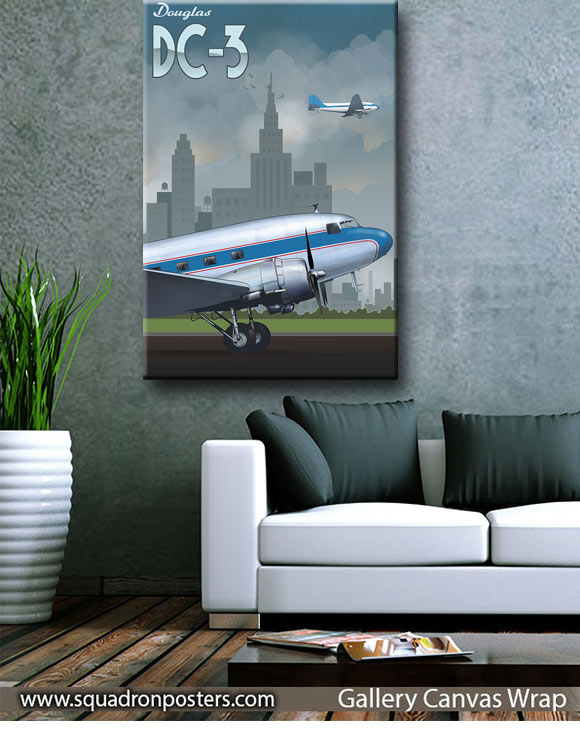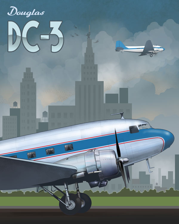 Through the Ages DC-3 vintage style military aviation travel poster art by – Squadron Posters!