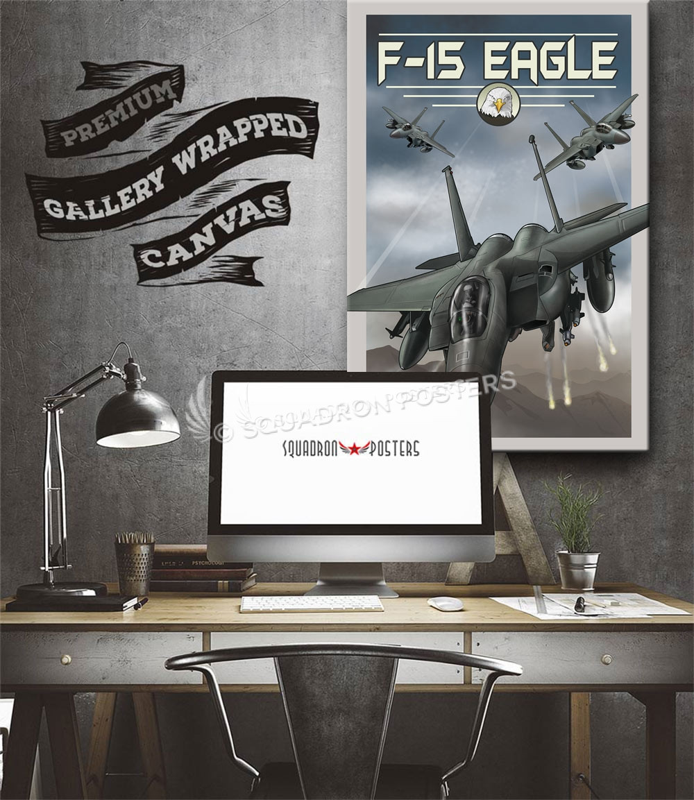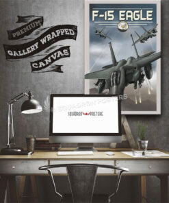 This vintage style military aviation travel poster “Through the Ages F-15 Eagle” artwork is dedicated to all the hard working men and women who fly, maintain and support the F-15 Eagle.