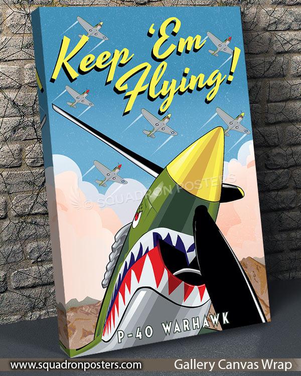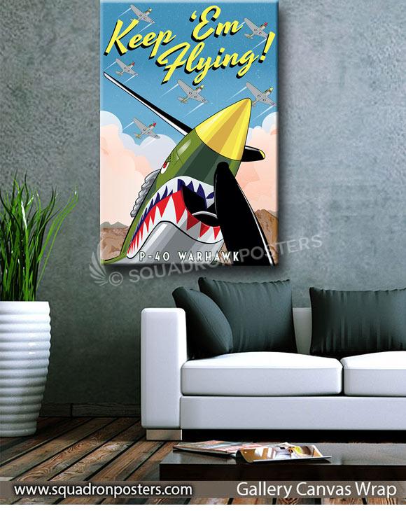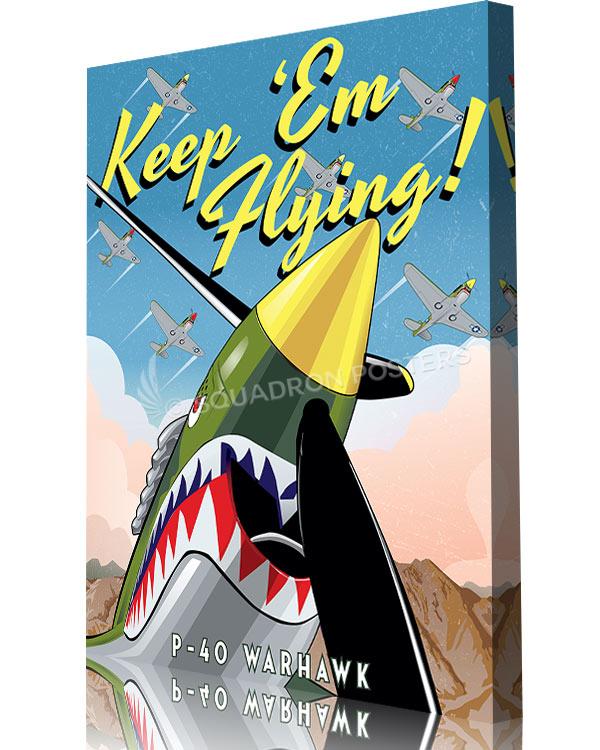 Through the Ages P-40 Warhawk vintage style military aviation travel poster art by Squadron Posters!