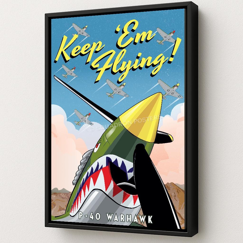 Through the Ages P-40 Warhawk vintage style military aviation travel poster art by Squadron Posters!