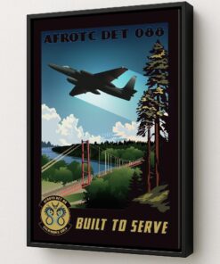 As one of the prerequisites for commissioning, each cadet must attend a two-week field training encampment. This training is conducted at an Air Force base during the summer, normally between a cadet’s sophomore and junior years. Field training emphasizes military orientation, academics, physical fitness training, leadership exercises, teamwork, job specialty briefings, military drill and ceremonies. Upon completion of the AFROTC program and all requirements for a bachelor’s degree, cadets are commissioned as second lieutenants and serve a minimum of four years in the Air Force. Graduate students are eligible for an Air Force commission upon successful completion of the AFROTC program. Check out this stunning Travis AFB AFROTC DET 88 Art by Squadron Posters!